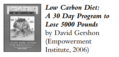 The author divides the change program into three categories. Climate-friendly lifestyle practices require a shift in habits, such as taking shorter showers and practicing fuel-efficient driving. Household systems are a home’s mechanical infrastructures; through periodic maintenance, such as sealing air leaks, you can make them more ecologically sound. But perhaps the greatest leverage lies in the last category – Empowering others to lose unwanted pounds. By inviting friends, neighbors, and coworkers to join you on “the diet,” you can scale up the impact of your efforts, create a support system, and begin to lay the groundwork for making changes in the larger systems you are a part of.